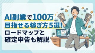 副業 AI副業で100万目指せる稼ぎ方5選!ロードマップと確定申告も解説 AI副業で月収100万円は本当に可能?本記事では、生成AIやChatGPTを活用した副業の現実、初心者が目指すべき収入ライン、AIライティング・SNSマネタイズ・コンテンツ販売などの具体的な稼ぎ方を解説します。失敗談や確定申告・住民税の注意点も紹介します。 2026.03.11 副業