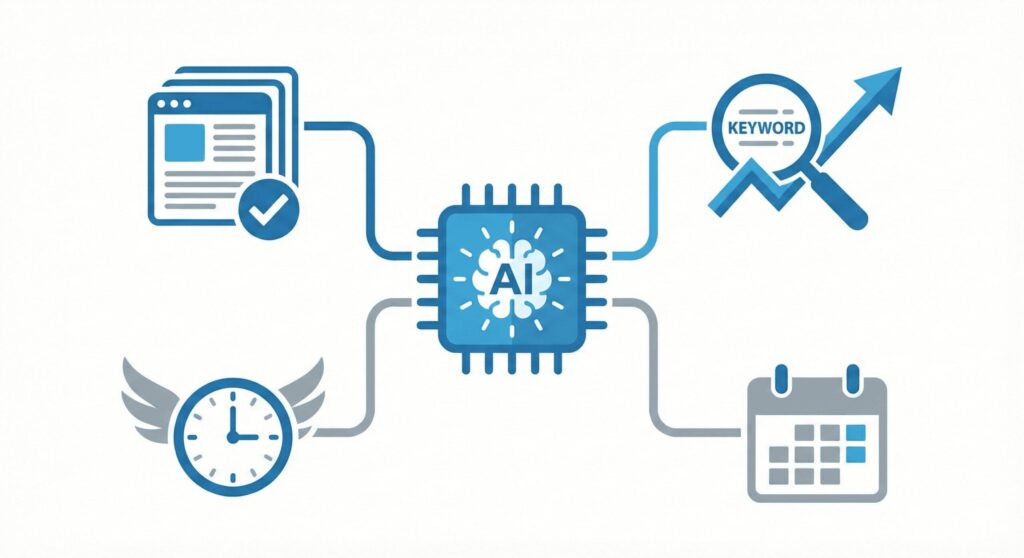 WordPress連携機能を使えば、入稿作業まで自動化でき、浮いた時間をリサーチやリライトに回せる。