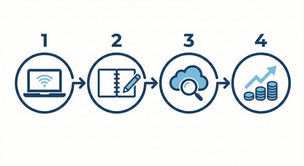 「何から始めればいいかわからない」という方のために、未経験からWebライターとして収益化するまでの手順を4ステップにまとめました。