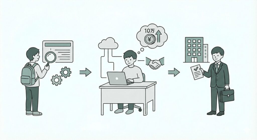 - キャリア: 文系未経験でも、長期インターンや直営業など、正しい手順を踏めば月10万円は達成可能